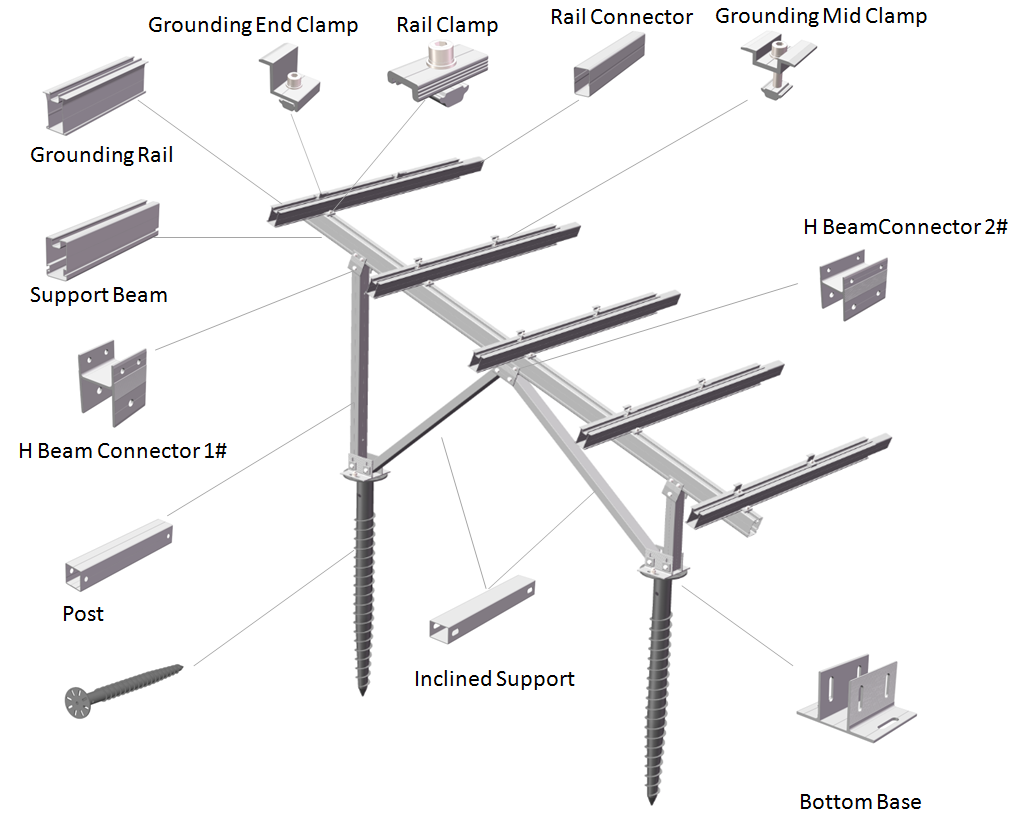 Aluminum Solar Ground Mounting System is a convenient solution design for ground mount installation, from commercial to utility level and the supporting frame is delivered with highest pre-assembly to unfold at site. It can be adapted to different local conditions, the optimized design is done by experienced structure engineer, this is essential as high loads caused by wind and snow. Depending on the projects input, the system is connected to the ground using ground screw or concrete foundations, and variable inclination and height makes plant design flexible.